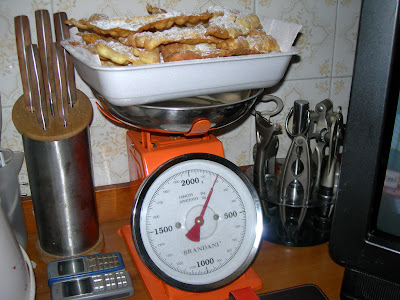 | Notate la leggerezza ottenuta: Questa bella confezione di frappe, pesa appena 200 grammi (compreso il contenitore), |